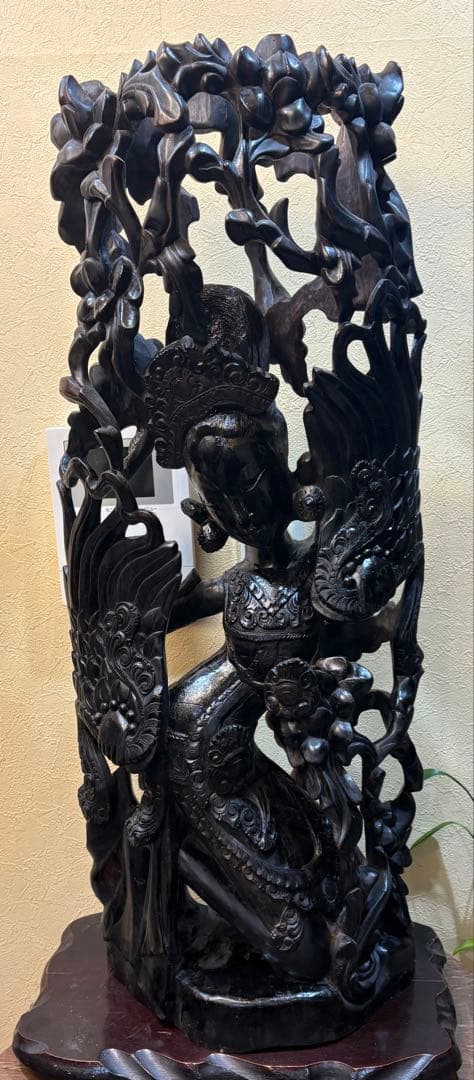 - 表情や全体のデザインはとても気に入ったのですが、一位一刀彫って新しい物でこんなにテカテカしてたでしょうか??なんかニスが薄く塗られているような感じの照りがちょっと私には残念です。もしニスが塗ってあるなら経年の色の変化は楽しめませんね。